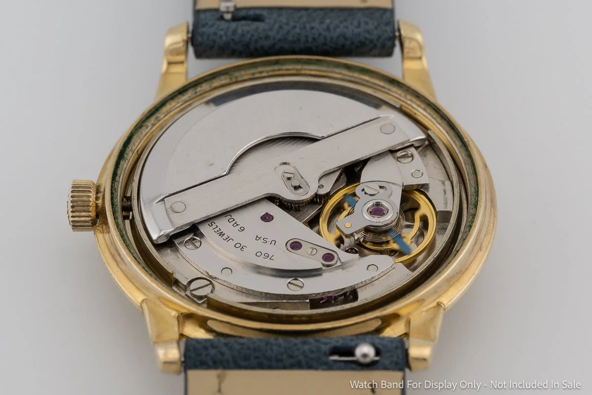 This watch has been fully professionally serviced and regulated to ensure peak performance. The American-made movement is working perfectly, running strongly and accurately. The gold plating remains in excellent condition, and the stainless steel screw-back provides robust protection for the high-grade caliber within. The hands have been freshly lumed.