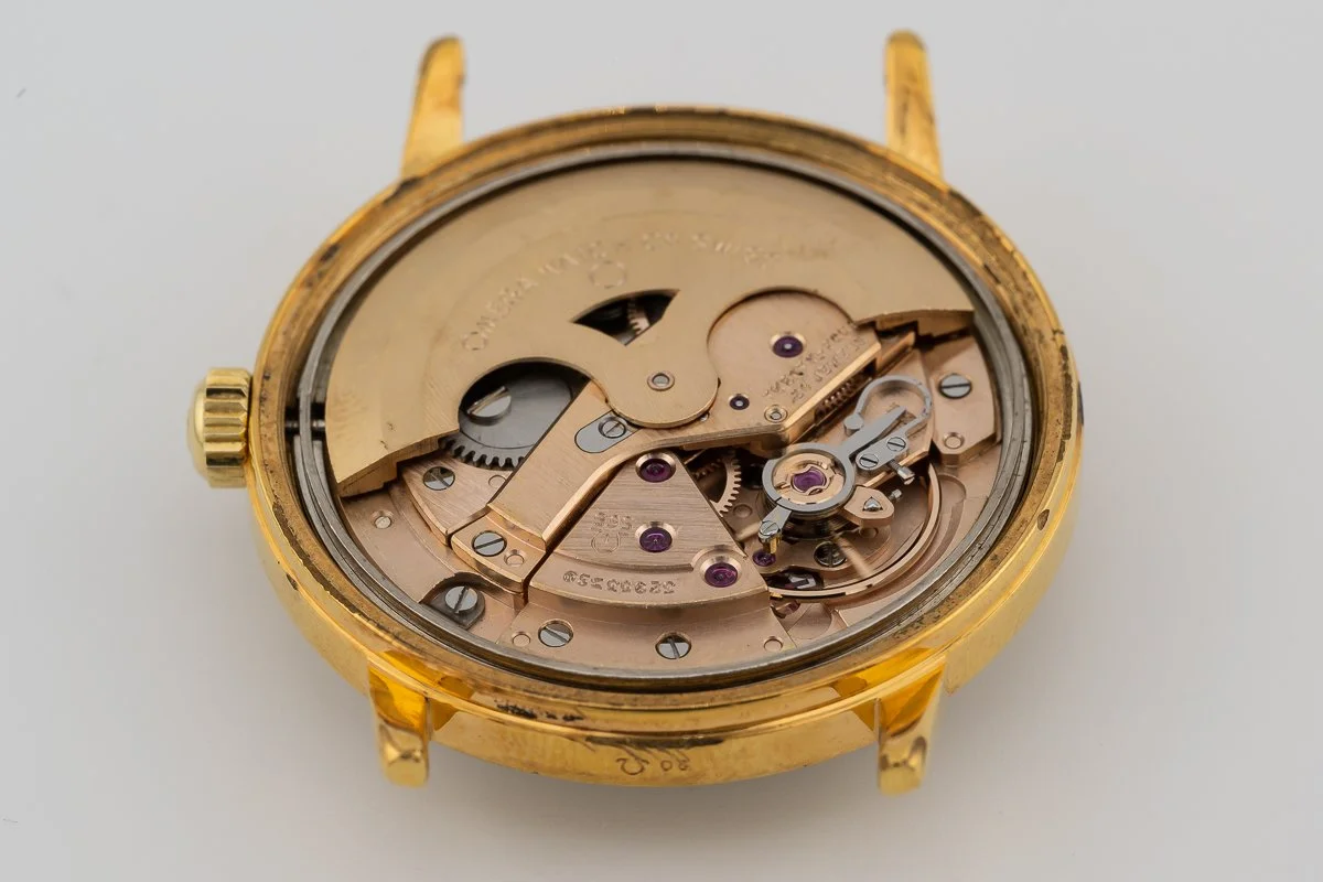 This lovely Genève really captures the understated elegance Omega perfected in the early 1970s, with a champagne silver sunburst dial framed by sharply faceted gold-plated markers that catch the light with every turn of the wrist. Beneath that beautiful dial beats Omega’s revered caliber 565, a 24-jewel automatic workhorse celebrated for its smooth winding action and quick-set date mechanism — one of the finest movements the company ever produced.